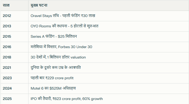 सितंबर 2012 में, सिर्फ 18-19 साल की उम्र में Ritesh Agarwal ने अपना पहला स्टार्टअप Oravel Stays शुरू किया। यह एक सस्ती रहने की जगह देने वाली वेबसाइट थी, जो Airbnb से प्रेरित थी। इसका मकसद था कि लोग कम दाम में अच्छा कमरा पा सकें।