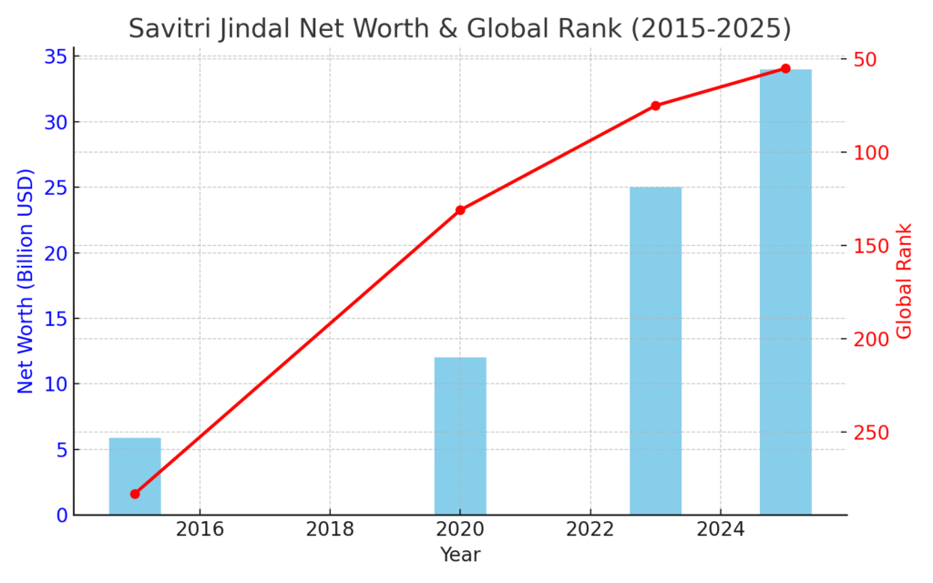 Savitri Jindal एक ऐसा नाम है जो भारतीय उद्योगपति जगत में सबसे ऊँचे स्थान पर विराजमान है। भारत की सबसे अमीर महिला और जिंदल ग्रुप की चेयरपर्सन एमेरिटस के रूप में सावित्री जिंदल ने एक साधारण गृहणी से उद्योगपति और राजनीतिज्ञ बनने तक का एक प्रेरणा दायक सफर तय किया है। फोर्ब्स की बिलियनेयर लिस्ट 2025 के अनुसार, उनकी कुल संपत्ति $35.5 बिलियन है, जो उन्हें भारत का तीसरा सबसे अमीर व्यक्ति बनाती है। 74 वर्षीय सावित्री जिंदल का जीवन संघर्ष, दृढ़ता और सफलता की एक प्रेरणादायक गाथा है। 2005 में अपने पति ओम प्रकाश जिंदल की दुर्भाग्यपूर्ण मृत्यु के बाद, उन्होंने जिंदल समूह की कमान संभाली और इसे नई ऊंचाइयों तक पहुंचाया। आज वह न केवल एक सफल उद्योगपति हैं बल्कि एक प्रभावशाली राजनीतिज्ञ भी हैं, जिन्होंने हरियाणा की राजनीति में अपनी छाप छोड़ी है